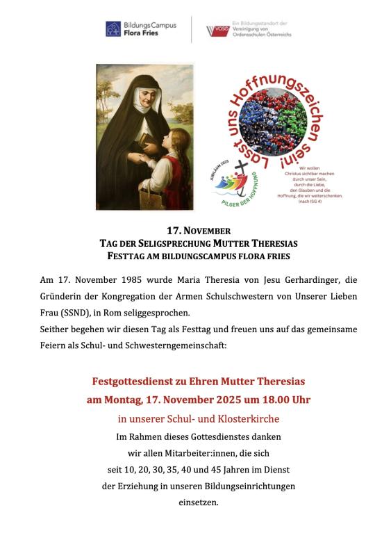 165 Jahre SSND in Wien Fünfhaus, 40 Jahre Seligsprechung Mutter Theresias und 270 Jahre Dienst unserer diesjährigen Jubilar:innen in der Friesgasse! Wenn das kein Grund zum Feiern ist! Wir danken... mehr lesen »