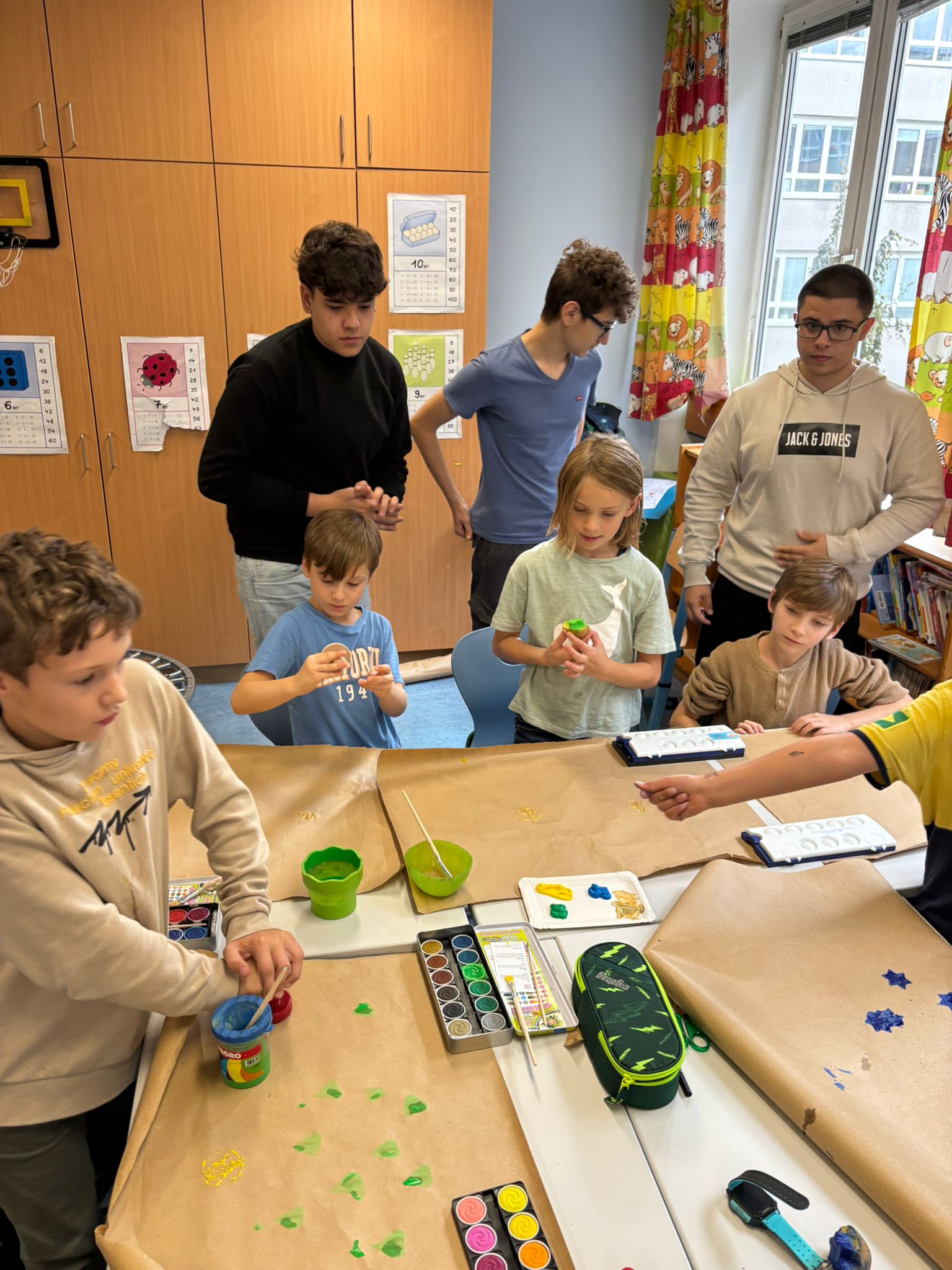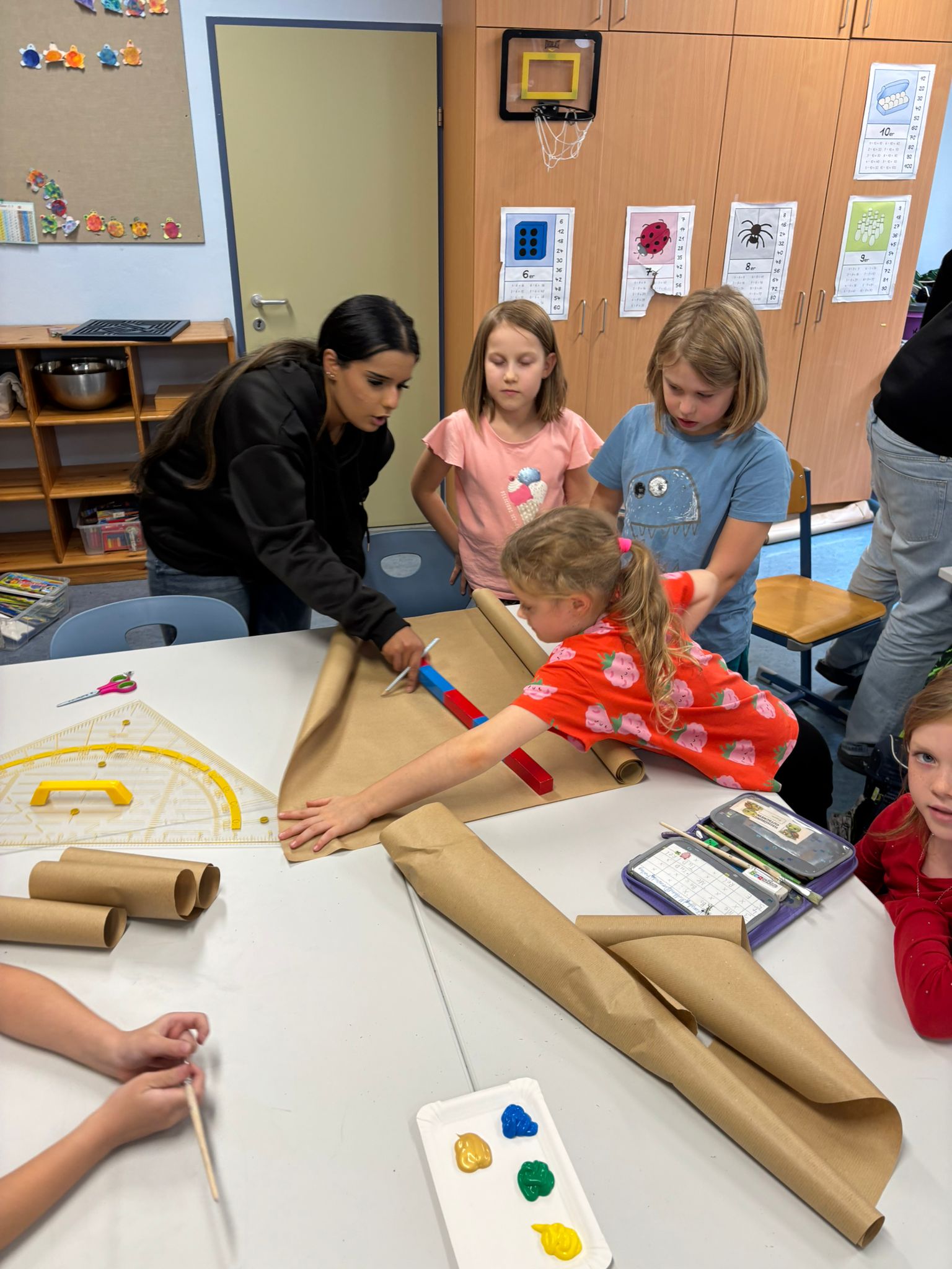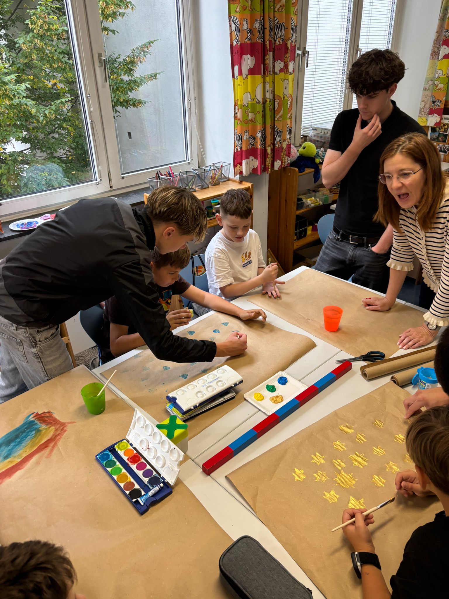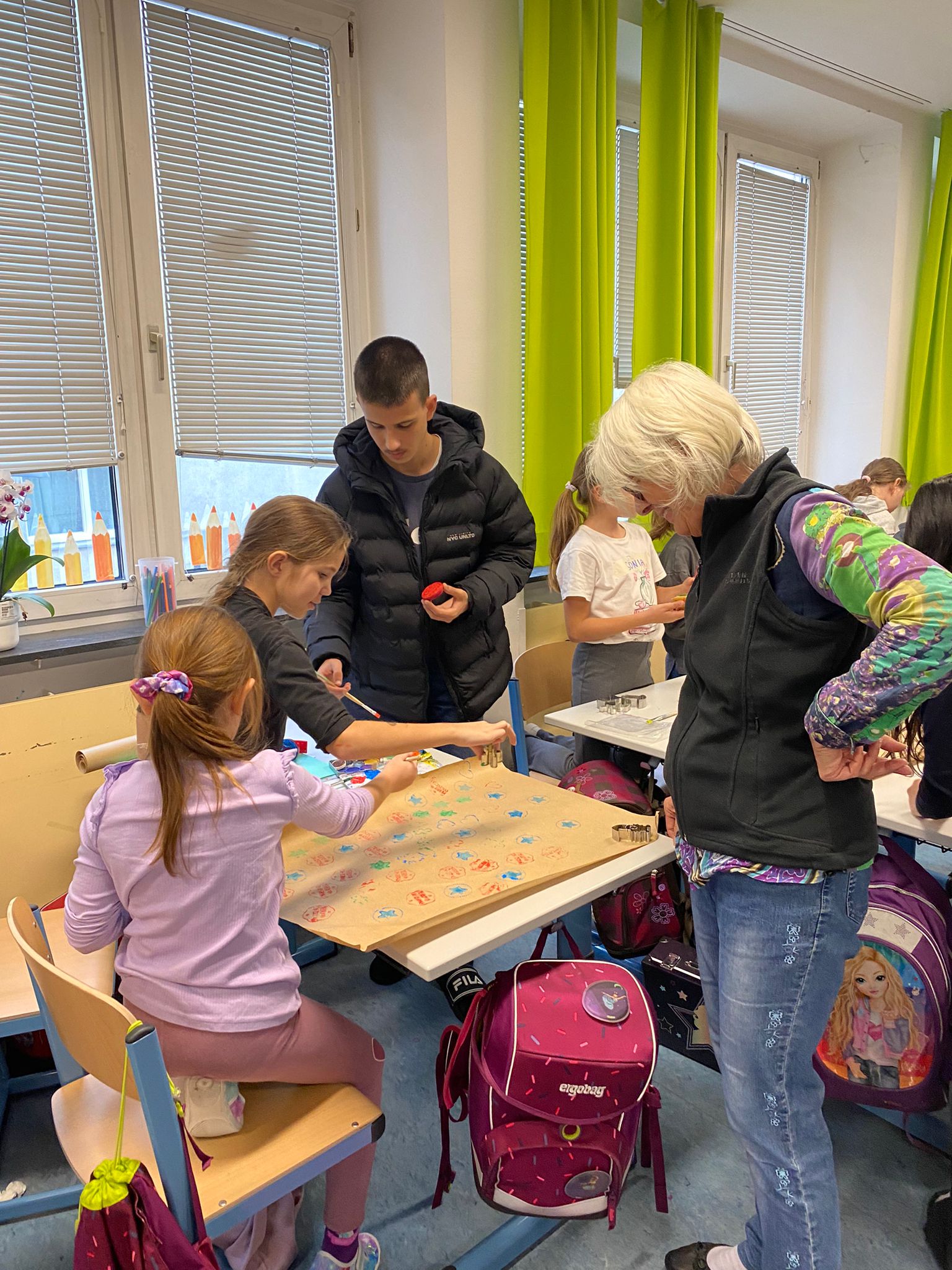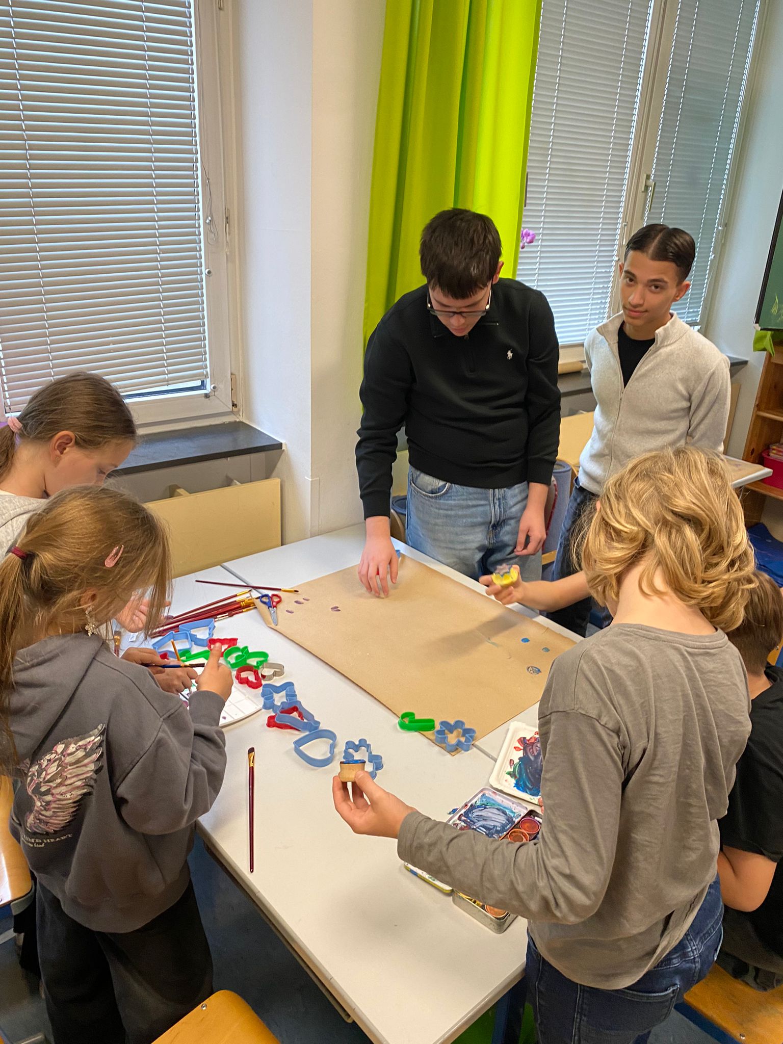 Unter dem Motto „Youth Start Entrepreneurial Challenges – Jedes Kind stärken“ arbeiten die Kinder mit den älteren Schüler:innen kreativ zusammen.