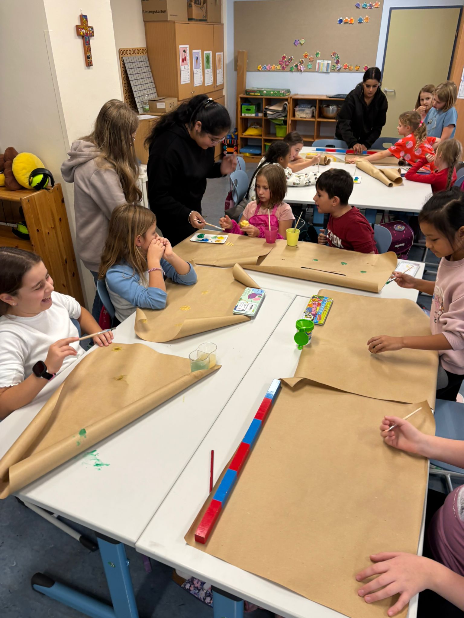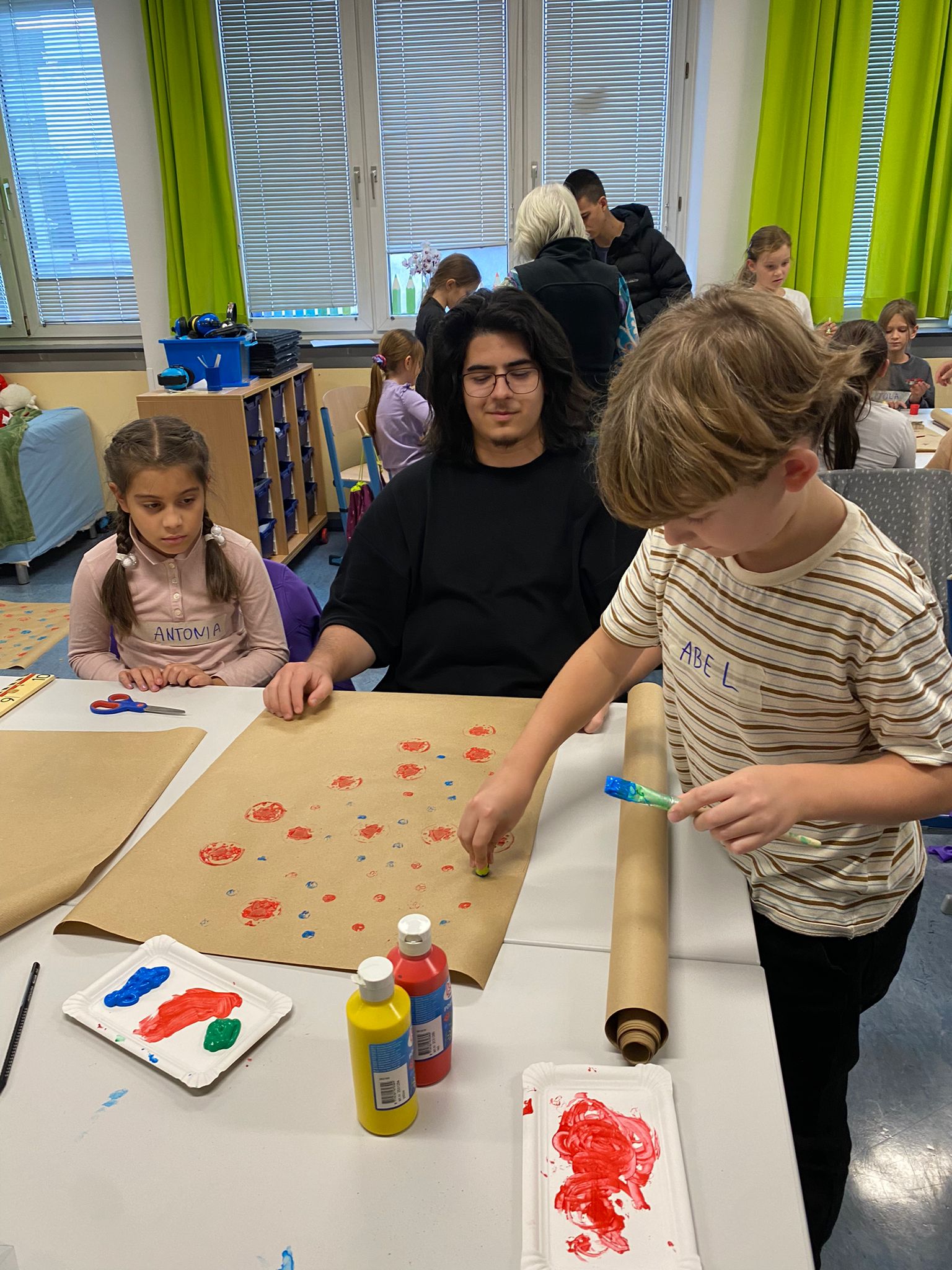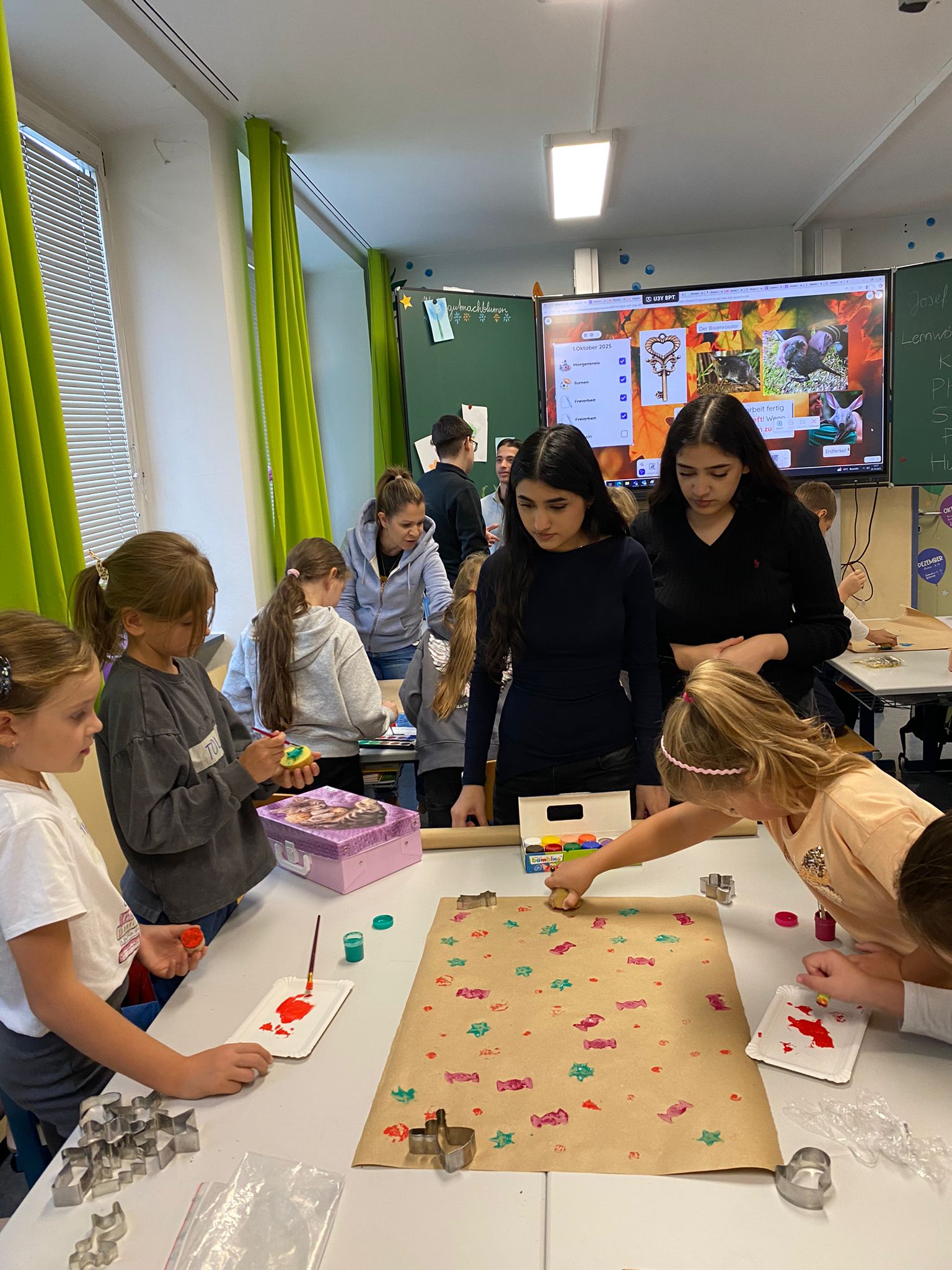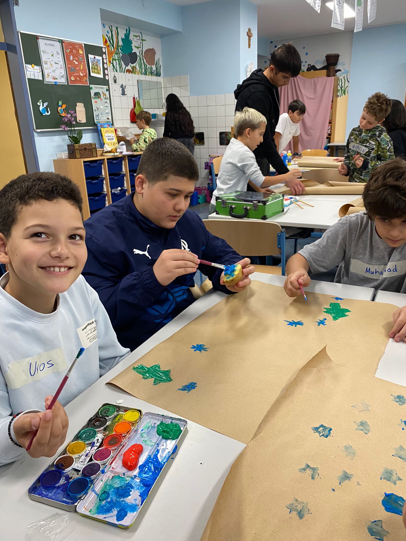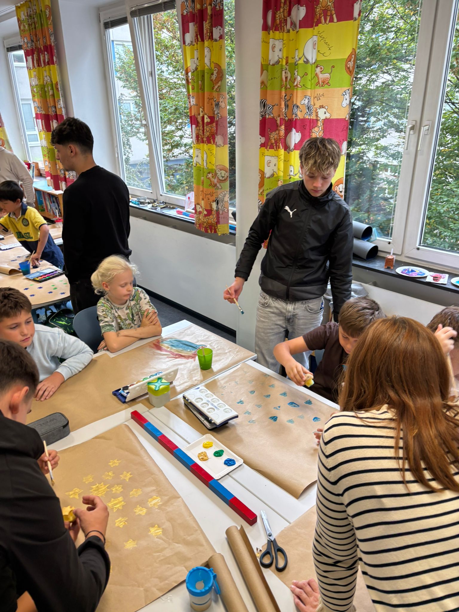 Unter dem Motto „Youth Start Entrepreneurial Challenges – Jedes Kind stärken“ arbeiten die Kinder mit den älteren Schüler:innen kreativ zusammen.