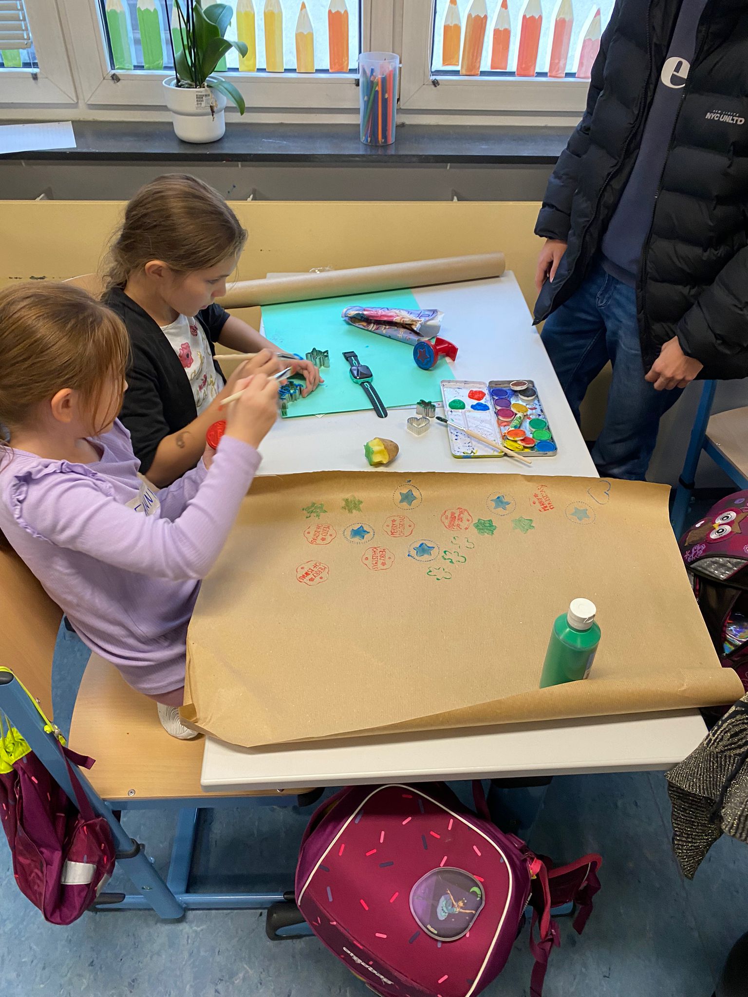 Zum Auftakt haben wir mit viel Freude Geschenkpapier bedruckt und das war erst der Anfang!