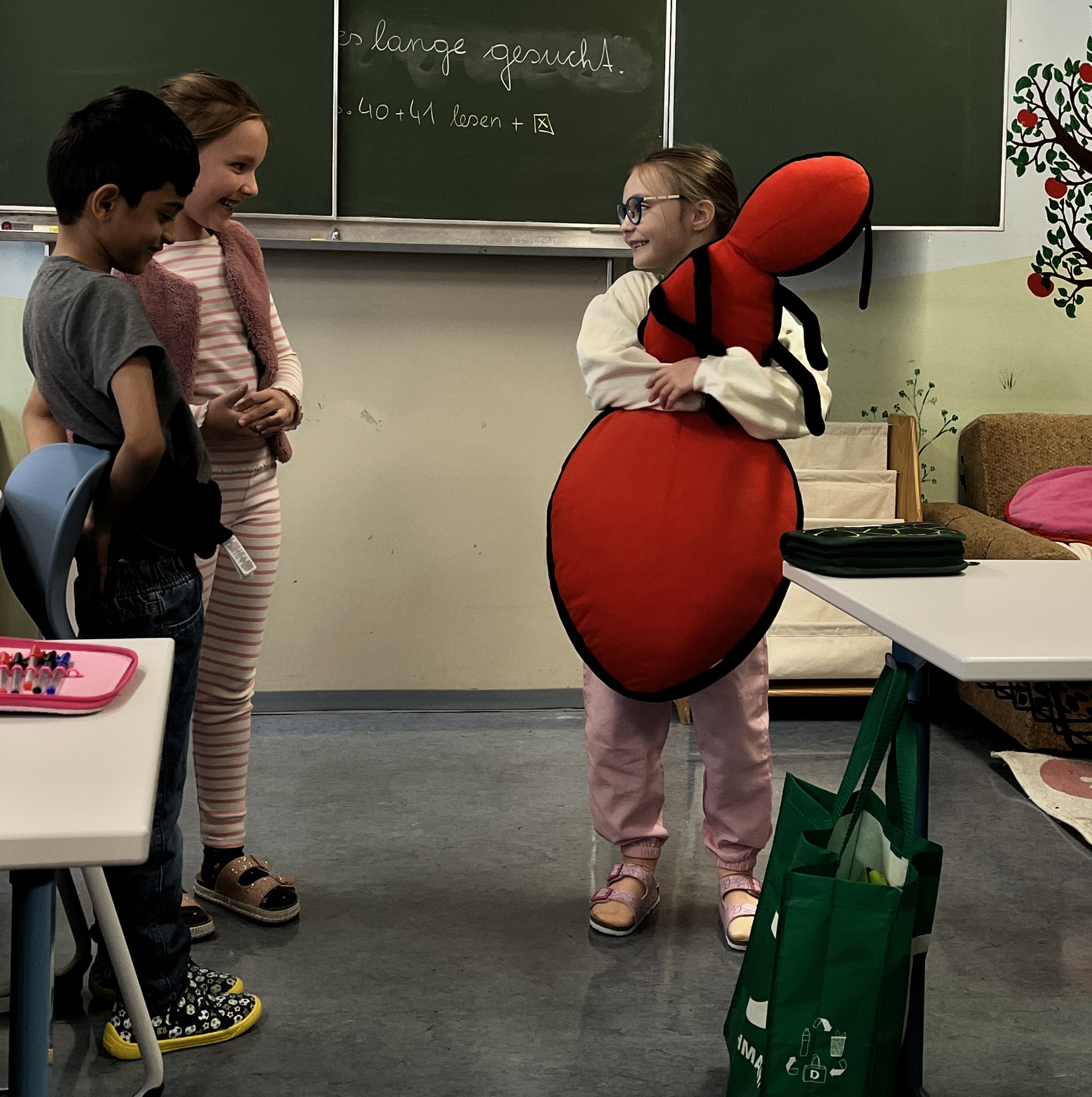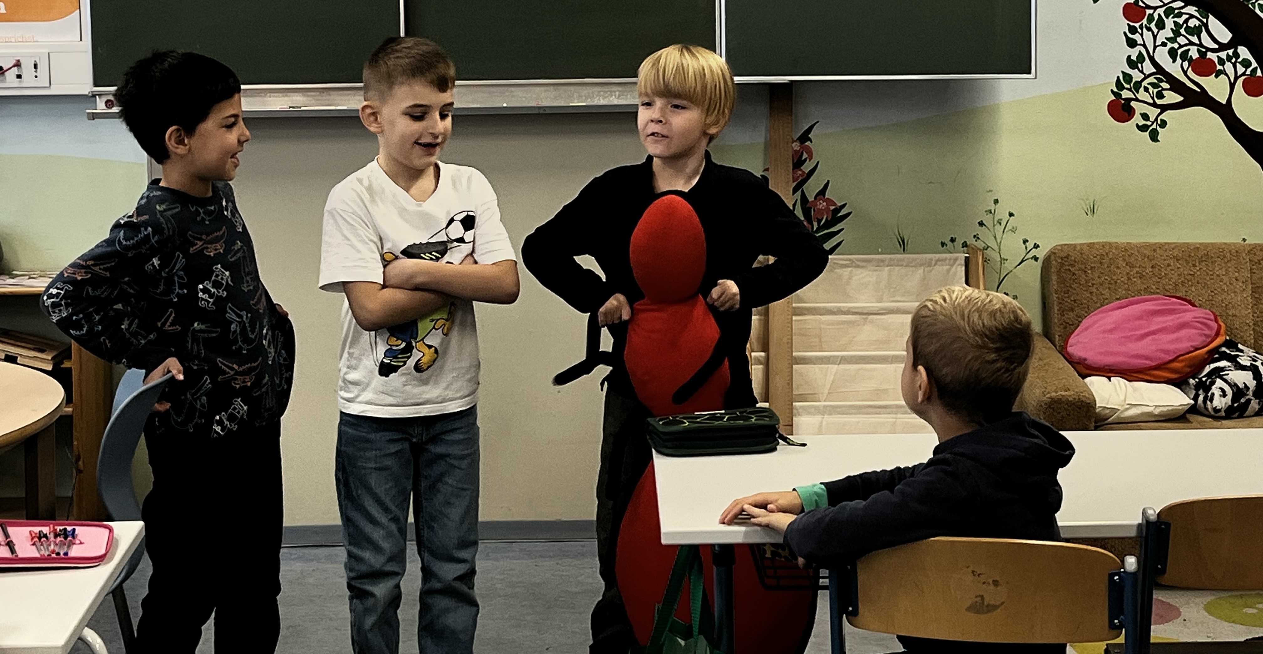 Danach spielten wir die Geschichte nach und sprachen darüber, dass jeder etwas anderes sehen oder denken kann – und dass es wichtig ist, einander zuzuhören um zusammenzufinden. So wird unsere Klassengemeinschaft noch stärker!