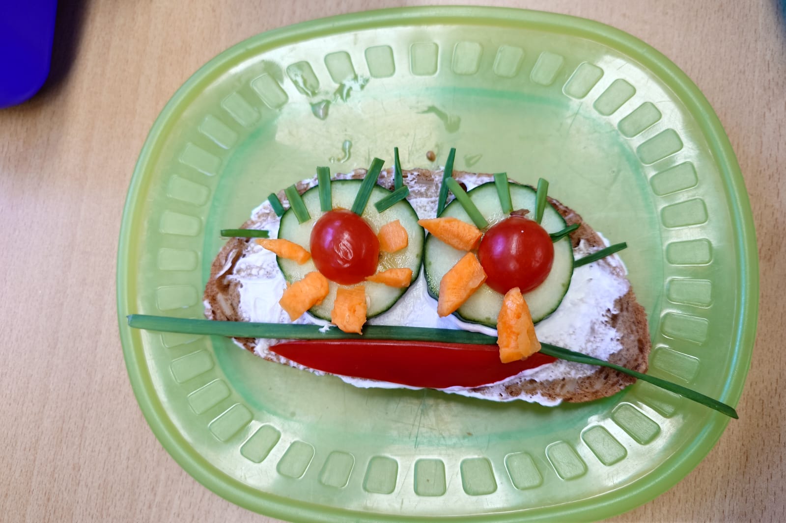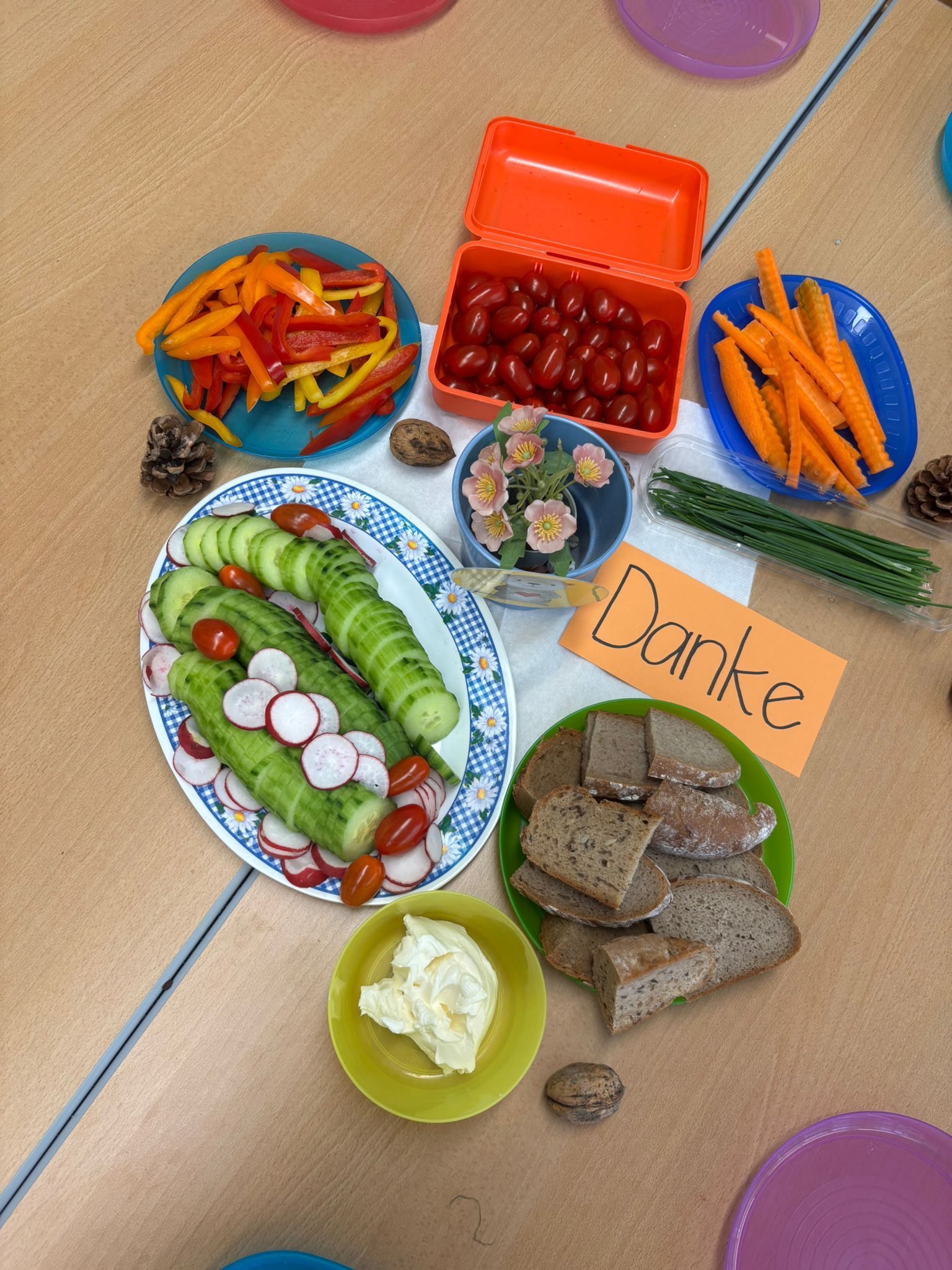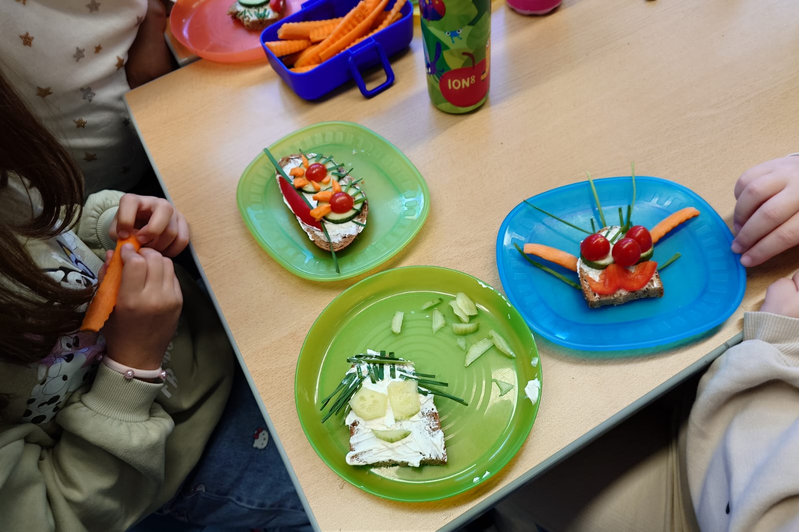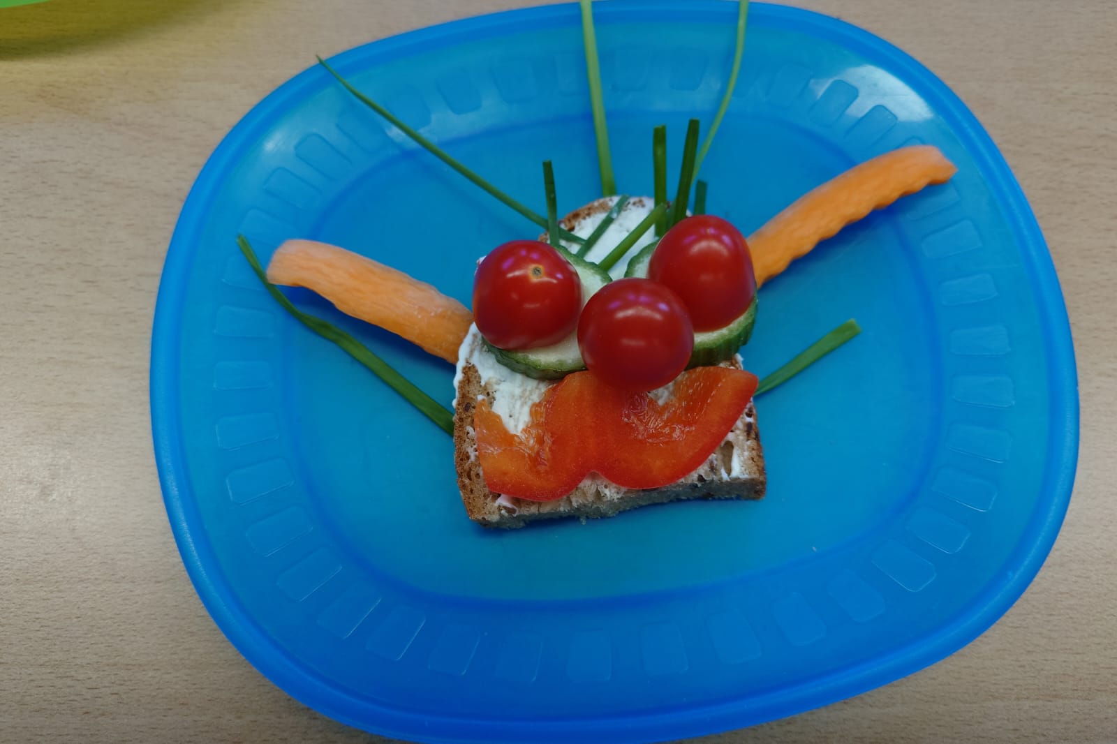 Aus einer Scheibe Vollkornbrot, Aufstrich, geschnittenem Gemüse und Schnittlauch entstanden richtige Kunstwerke zum Essen. Unglaublich,wie kreativ die Kinder waren!