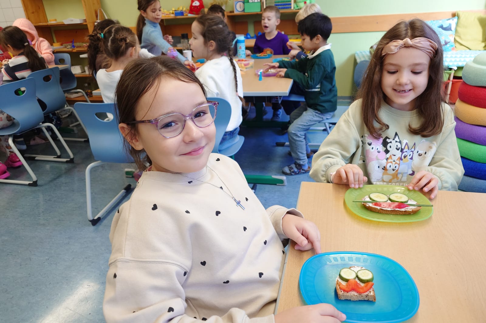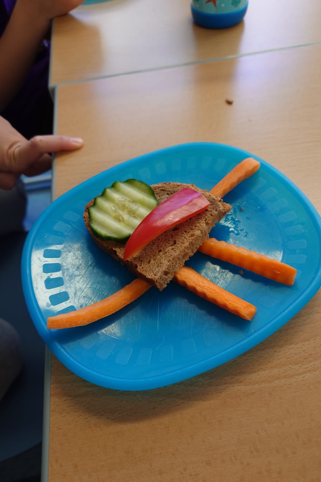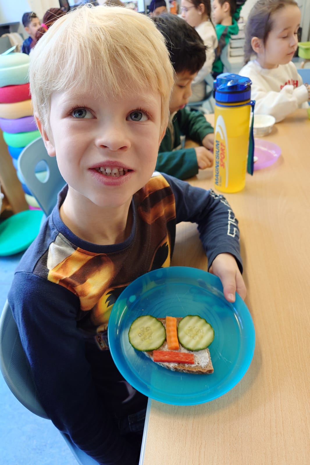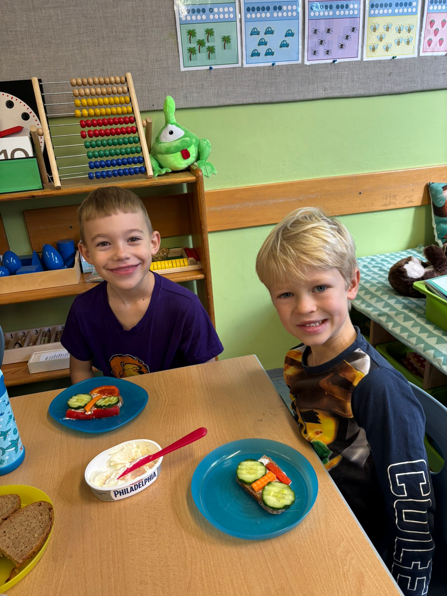 Aus einer Scheibe Vollkornbrot, Aufstrich, geschnittenem Gemüse und Schnittlauch entstanden richtige Kunstwerke zum Essen. Unglaublich,wie kreativ die Kinder waren!