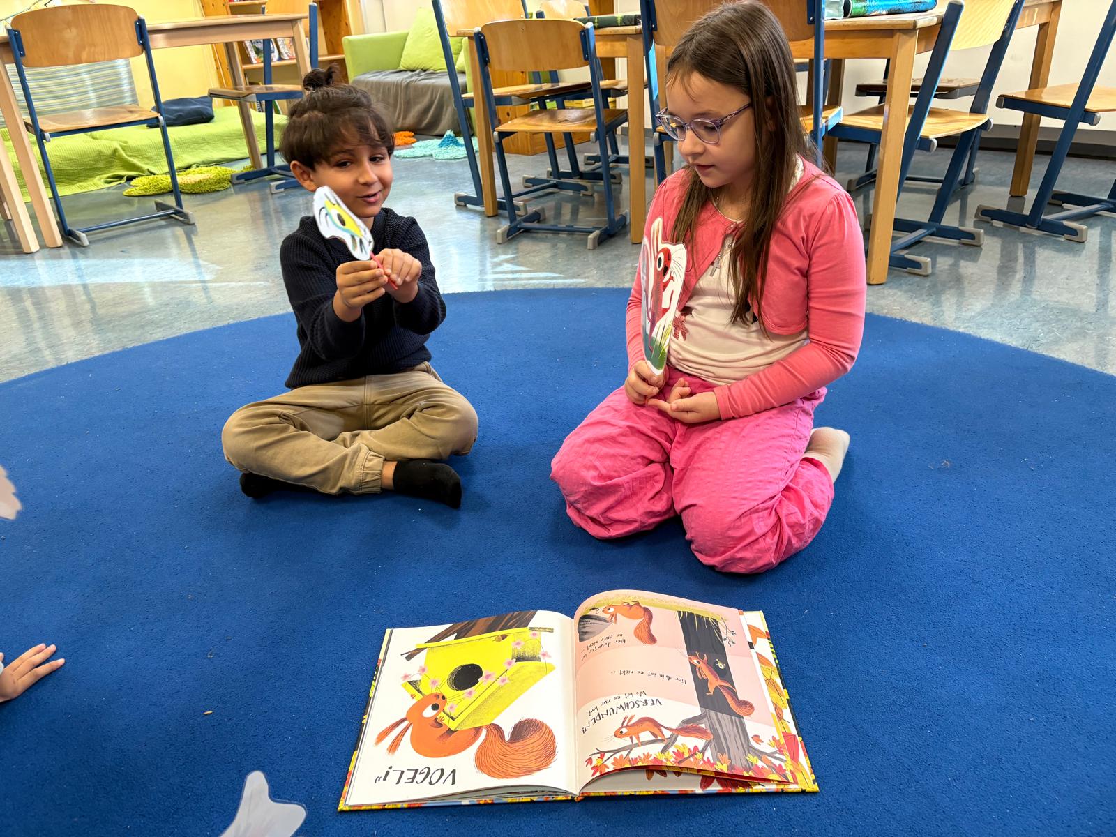 Mit dem Bilderbuch “der Blätterdieb“ tauchten die Kinder im Oktober in die herbstliche Geschichte ein und spielten mit großer Begeisterung die Handlung und Dialoge nach. Dabei ließen sie mit eigenen Worten die Figuren lebendig werden.