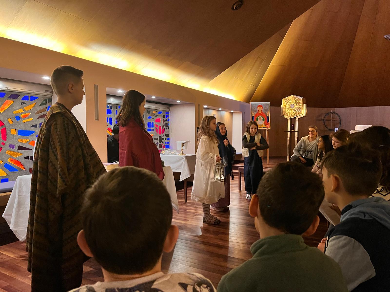 In feierlicher und besinnlicher Atmosphäre wurde am 17. Dezember 2025 in der Kapelle die Weihnachtsmesse mit Pfarrer Martin Rupprecht gefeiert. Eine besondere Gestaltung erfuhr die Messe dadurch, dass die Kinder der 3. Klasse anstelle der Lesung die Weihnachtsgeschichte spielerisch darstellten. Mit viel Engagement und Freude brachten sie die biblische Geschichte zum Leben und berührten damit die Anwesenden. Die gemeinsame Feier bot einen schönen Moment des Innehaltens und der Einstimmung auf das Weihnachtsfest.