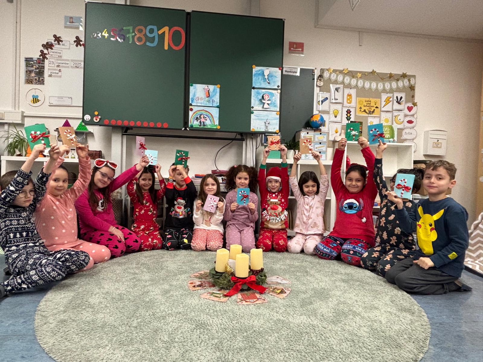 Am letzten Schultag vor Weihnachten fand bei uns ein gemütlicher Pyjamatag statt. Die Kinder kamen in ihren hübschesten Pyjamas – viele sogar in fröhlichen Weihnachtspyjamas – in die Schule.