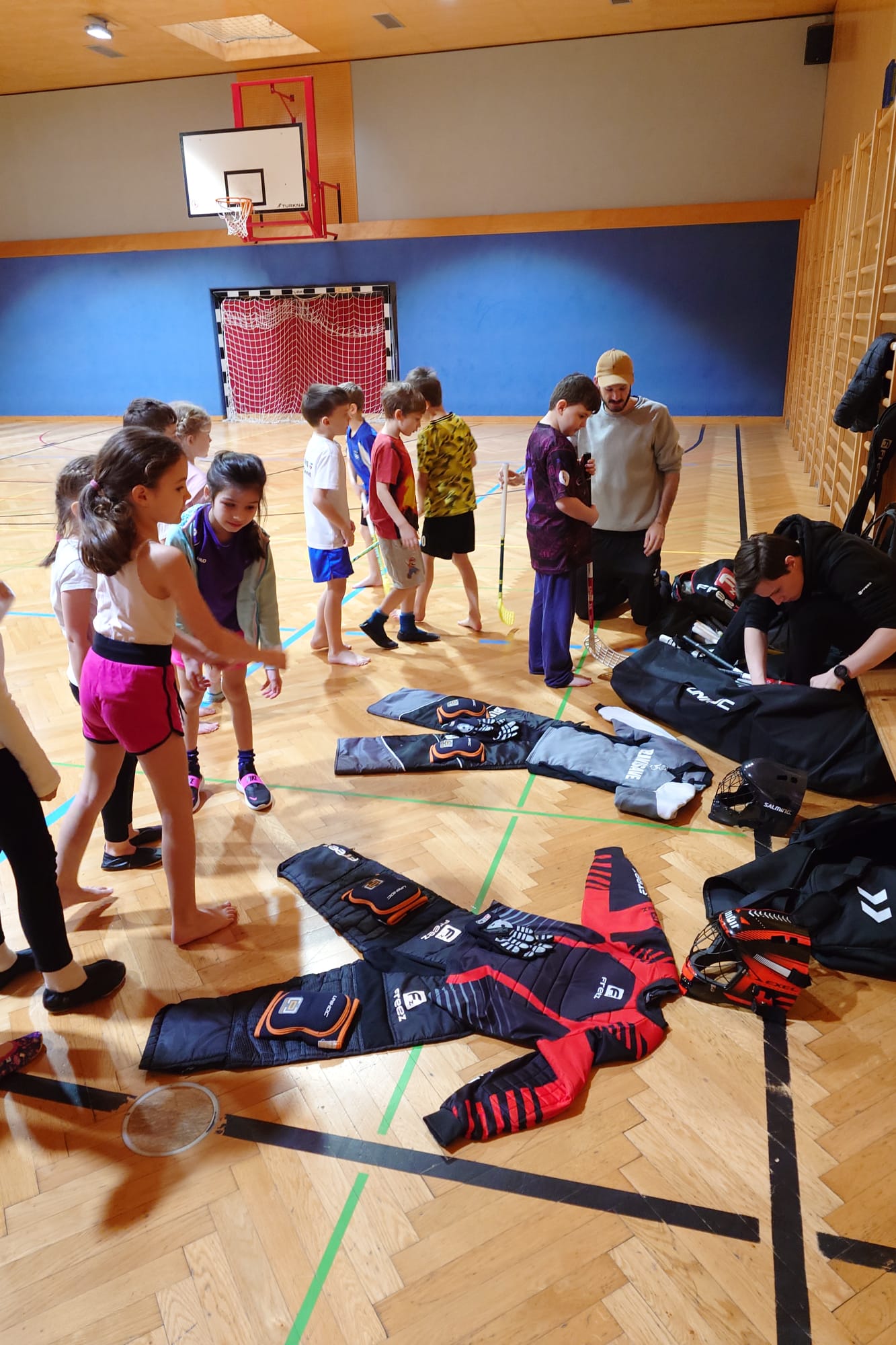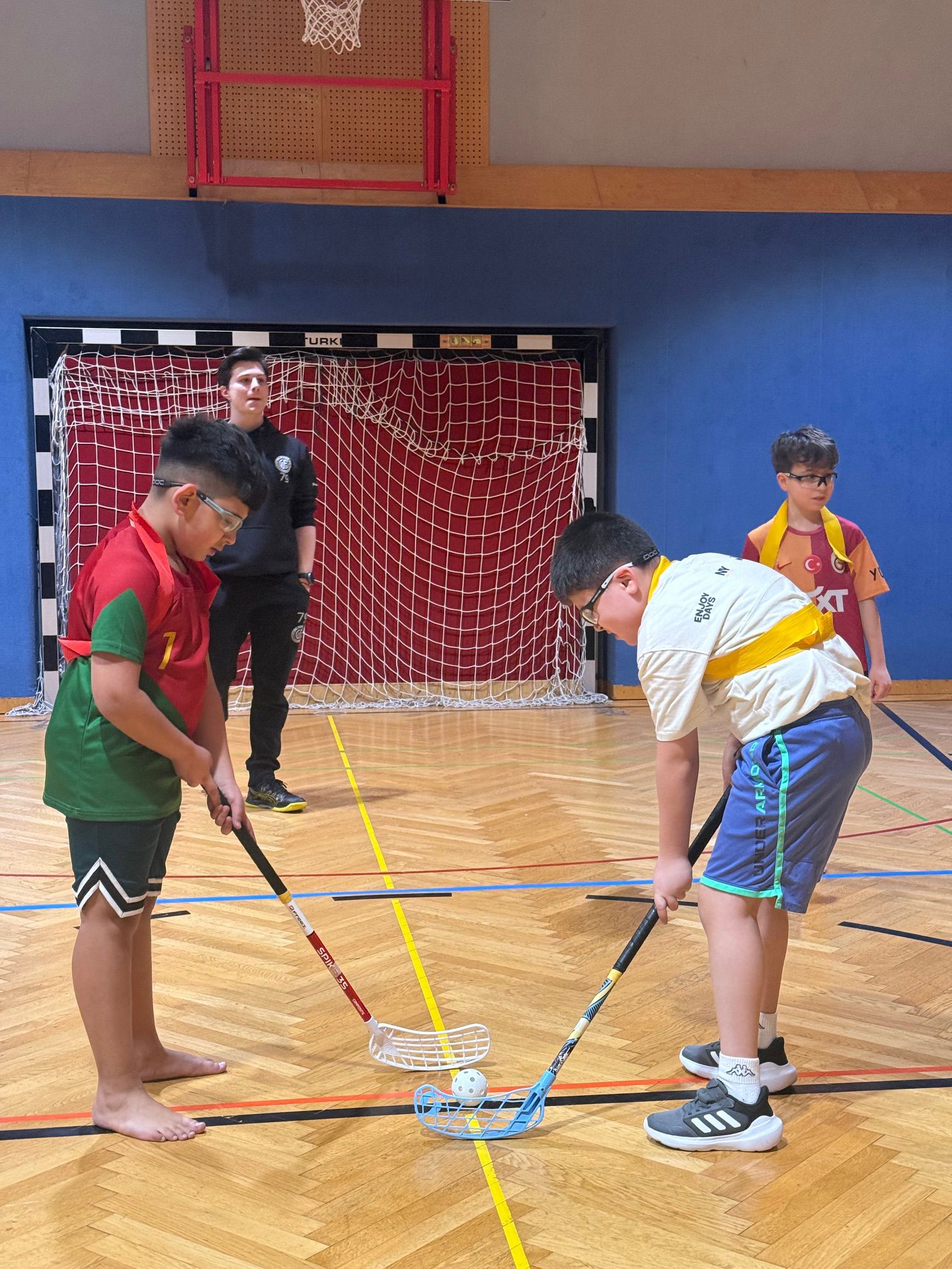 Die Floorball-Einheiten sind ein echtes Highlight in unserem Schulalltag. Mit viel Freude und Bewegung entdecken die Kinder diese schnelle Teamsportart, verbessern spielerisch ihre Koordination und erleben, wie wichtig Zusammenhalt und Fairness sind.