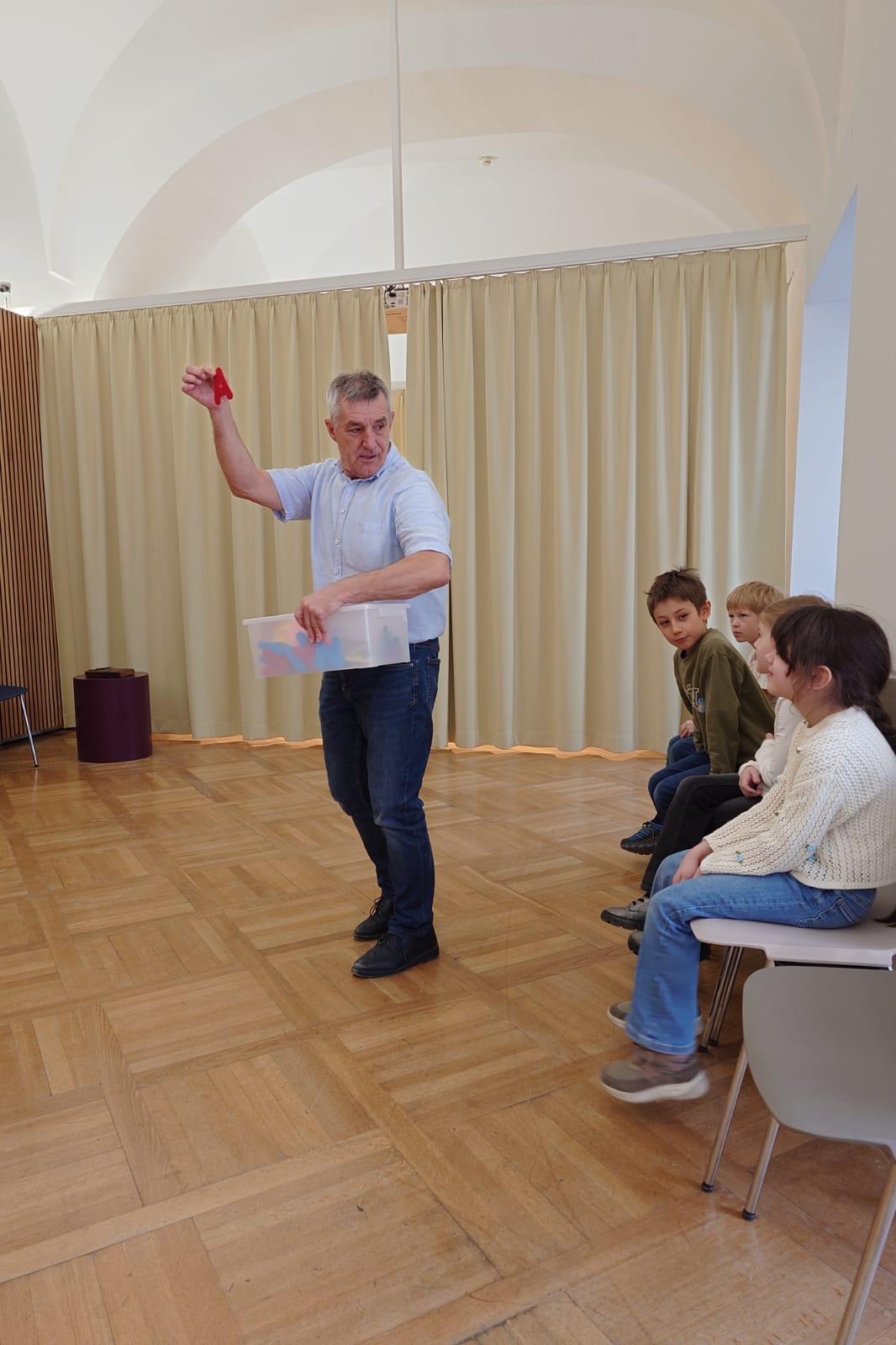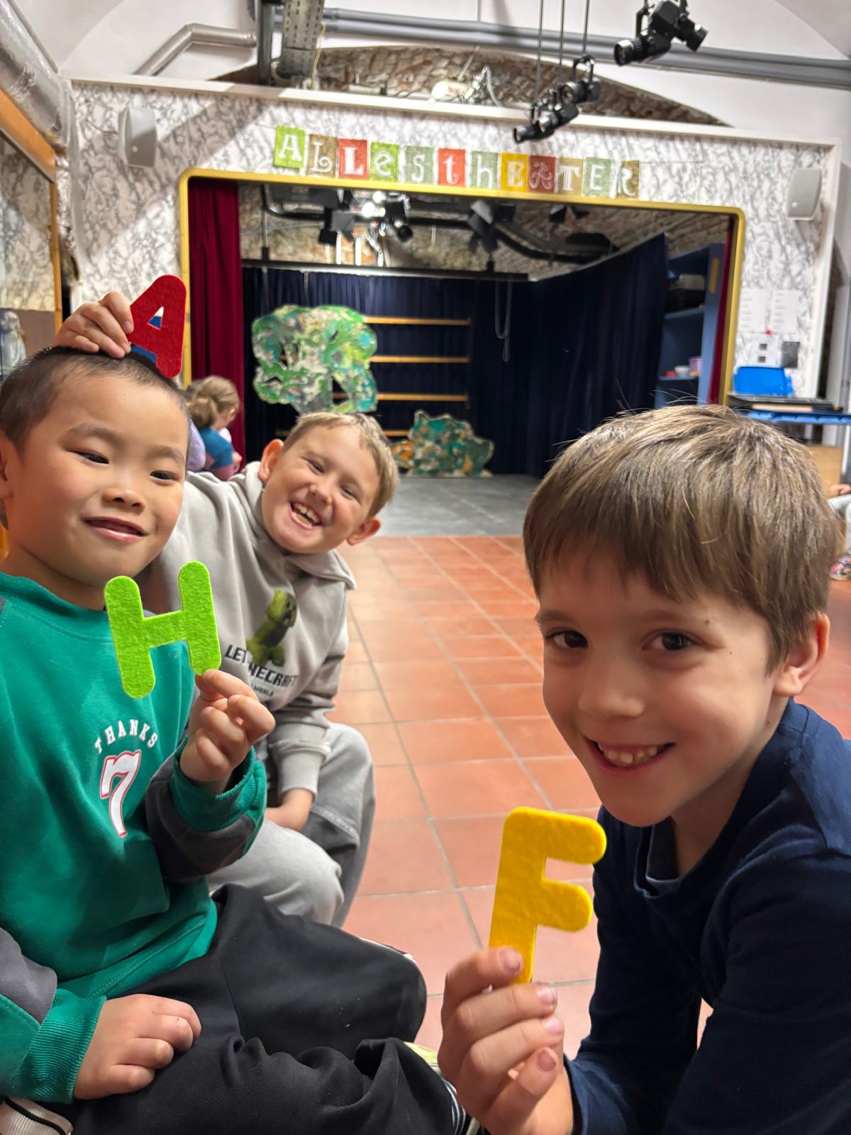 Anschließend entdeckten die Kinder durch verschiedene, an Buchstaben angelehnte Übungen unterschiedliche Gefühle und lernten, diese mit Mimik und Gestik auszudrücken.